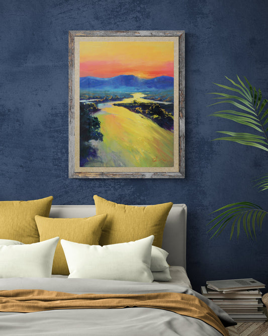 Painting on canvas original, Sunset, River art, New home gift, living room wall art, Mother gift, large landscape painting