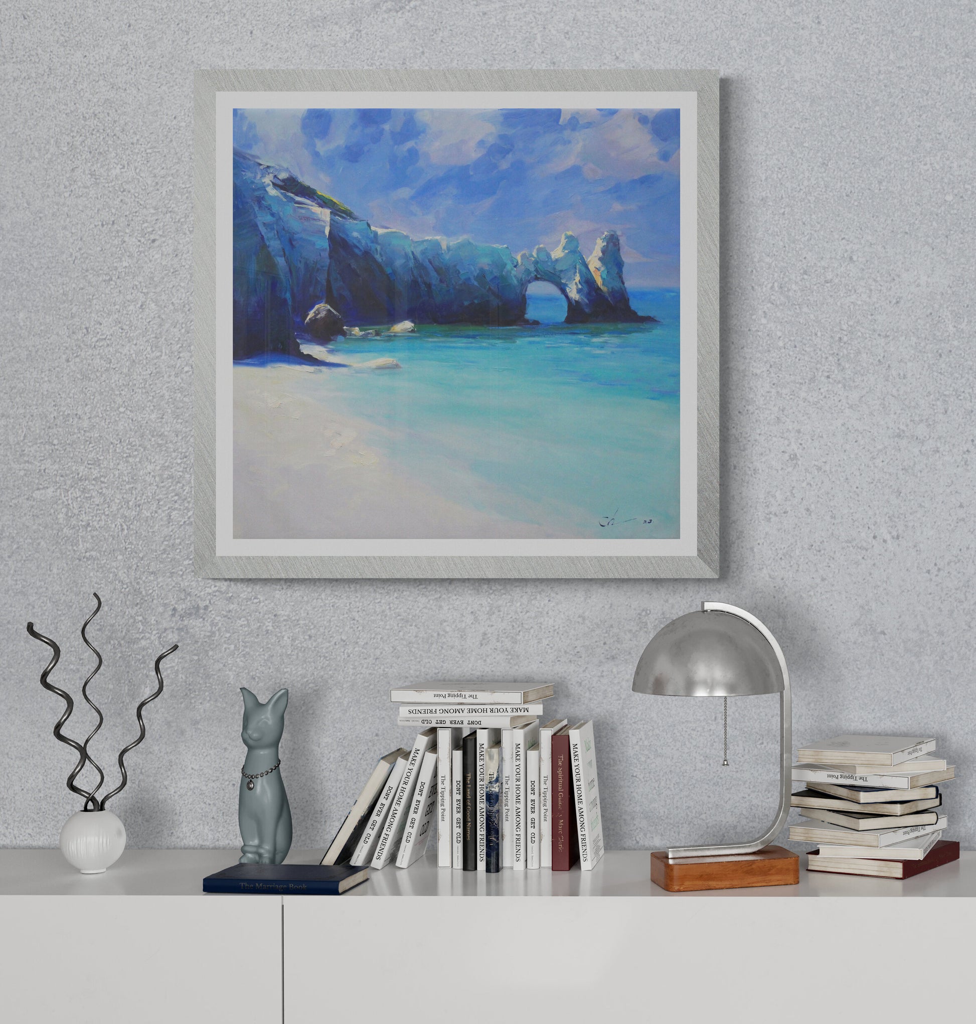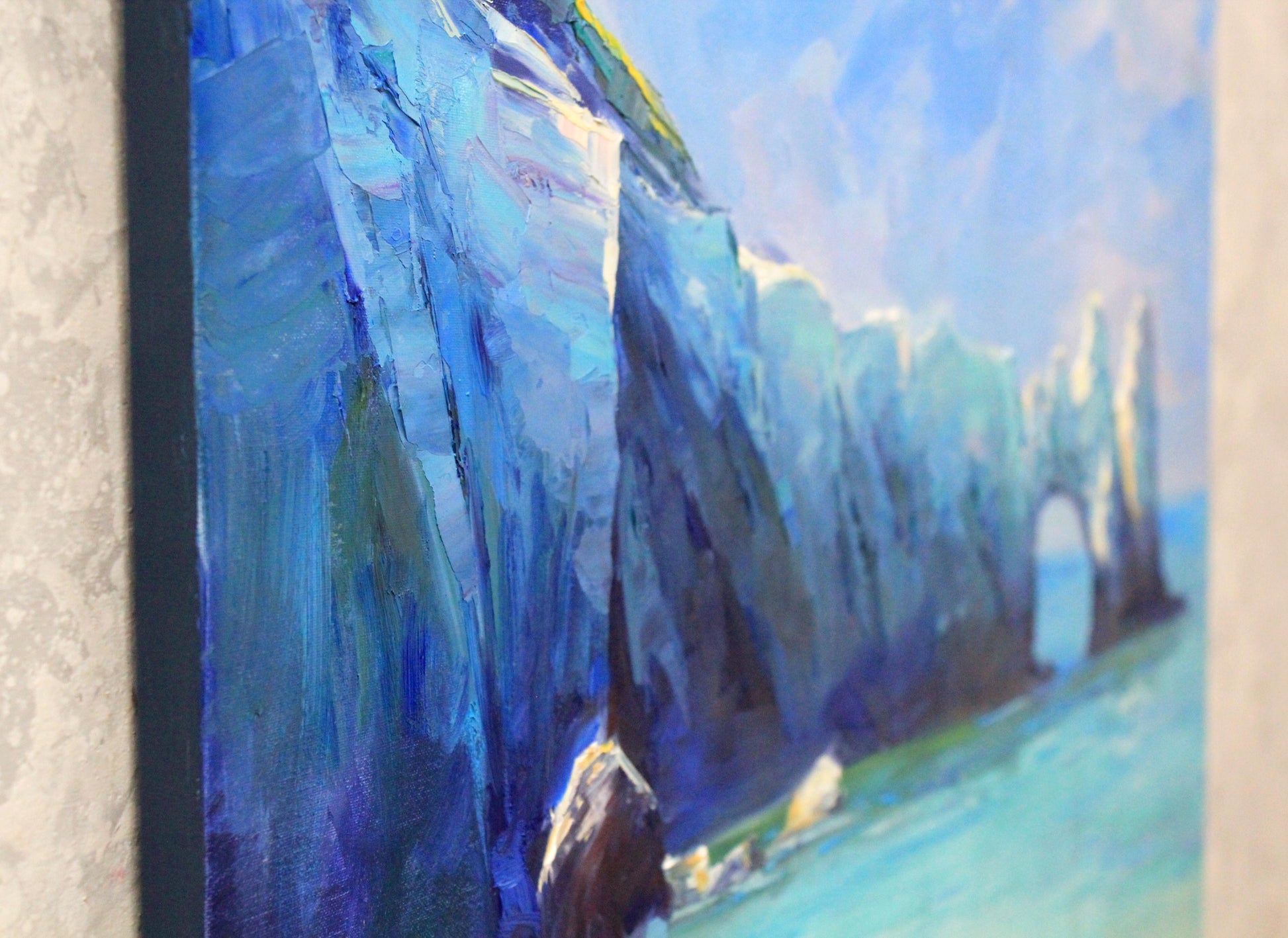 Transport yourself to the enchanting Skiathos Island in Greece through our original European landscape painting. This artwork captures the essence of the Greek island's beauty, bringing the allure of its landscapes to life. The soothing blue tones and textured details in this oil painting create a captivating visual experience. Let this piece of Greek wall art infuse your space with the charm of the Mediterranean, celebrating both artistry and the scenic landscapes that inspire the soul.