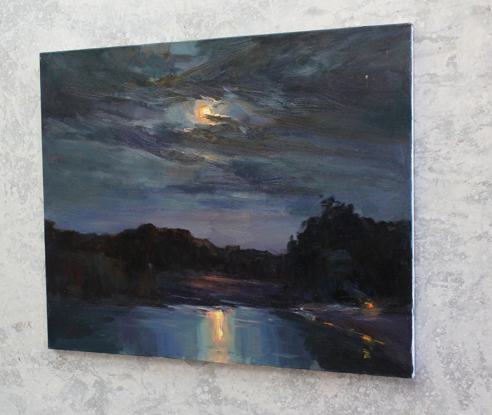 New home gift, Impressionist painting, night sky, cloud art, moon painting, night sky, river art, landscape painting, fine art