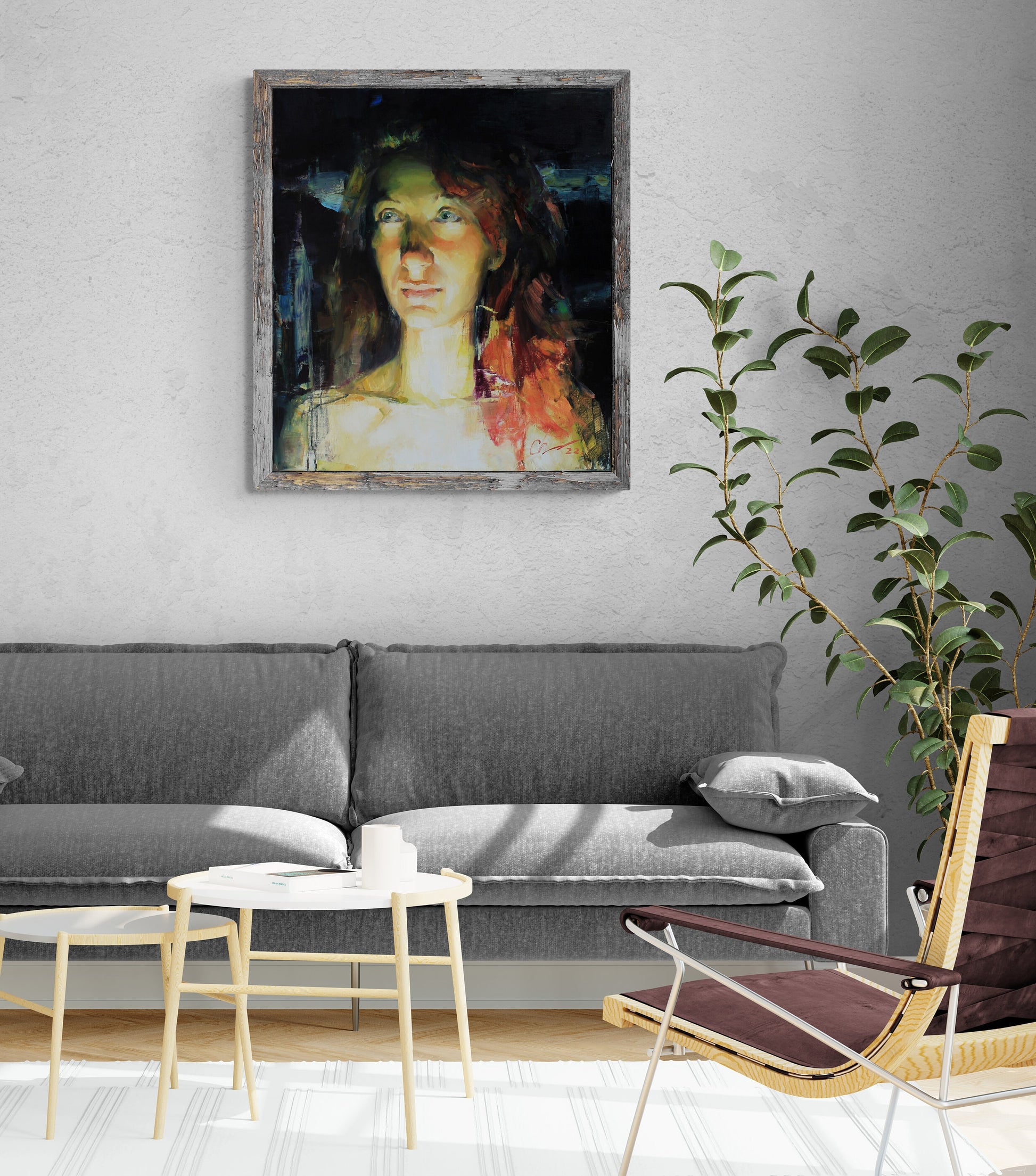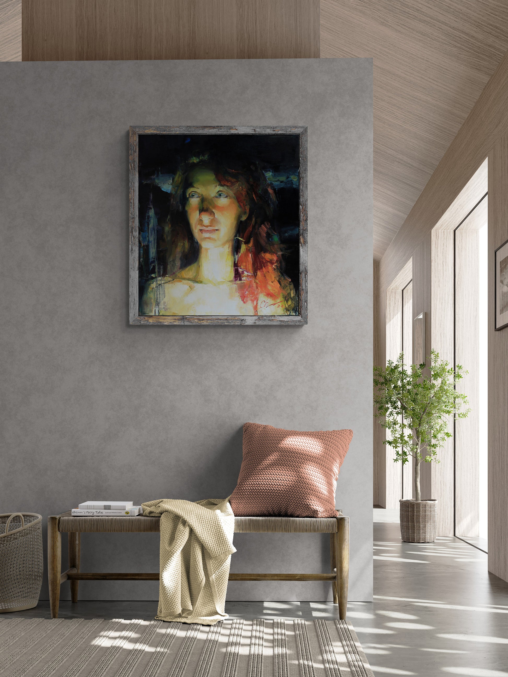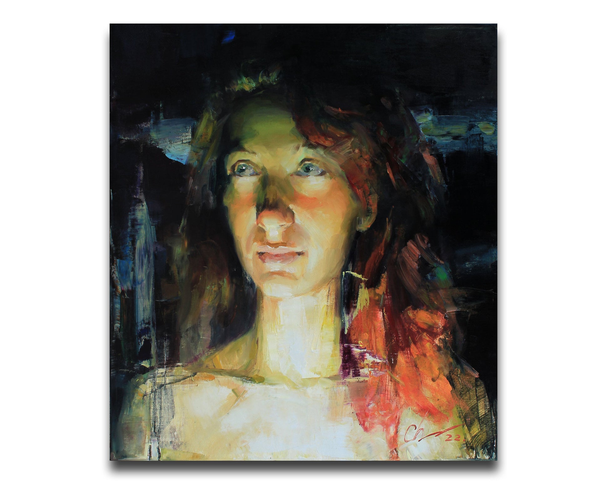 Play of light woman oil painting, woman portrait painting, woman oil painting, original woman painting, women of color abstract art